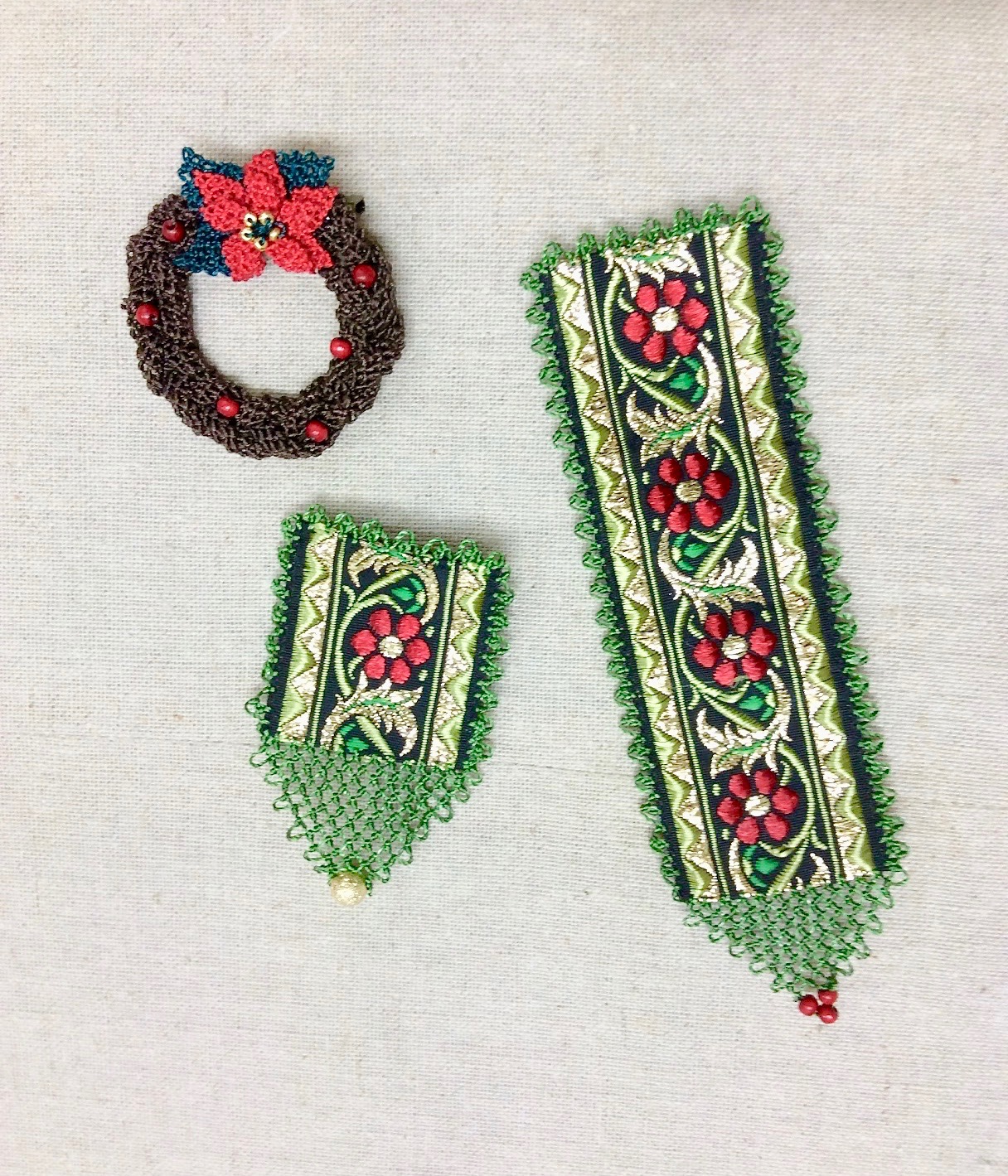 "オヤ" とはトルコの伝統的なレース編みの総称で、トルコ語で縁飾りを意味するそうです。縫い針を使うイーネオヤ、かぎ針を使うトゥーオヤ、ビーズを使うボンジュクオヤなど、技法や素材によって様々なバリエーションがあり、この教室では "イーネオヤ" の技法を学びます。講師は渡辺奈緒子先生です。